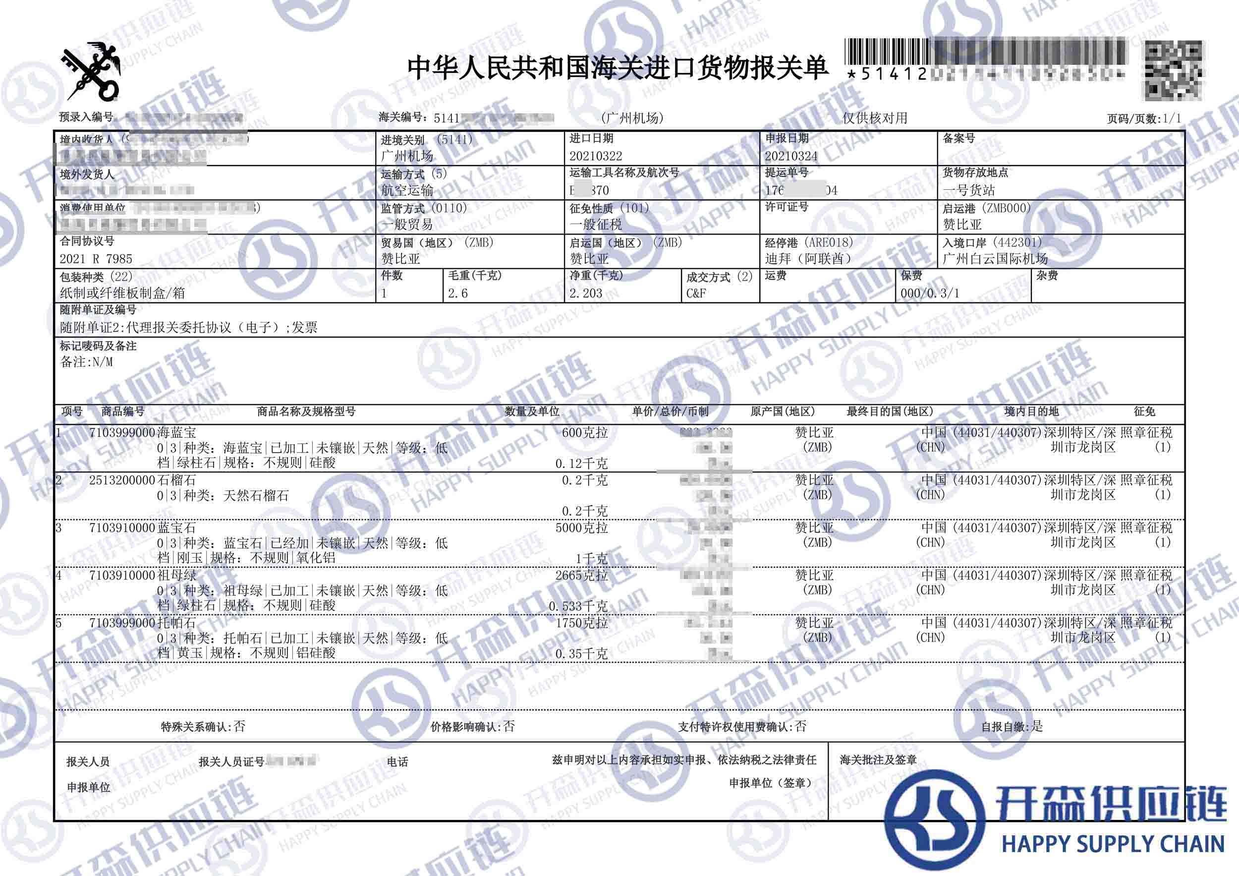 一、贊比亞寶石進(jìn)口報關(guān)代理案例詳情