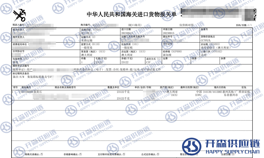 一、澳大利亞蛋黃石寶石進(jìn)口報關(guān)代理案例詳情