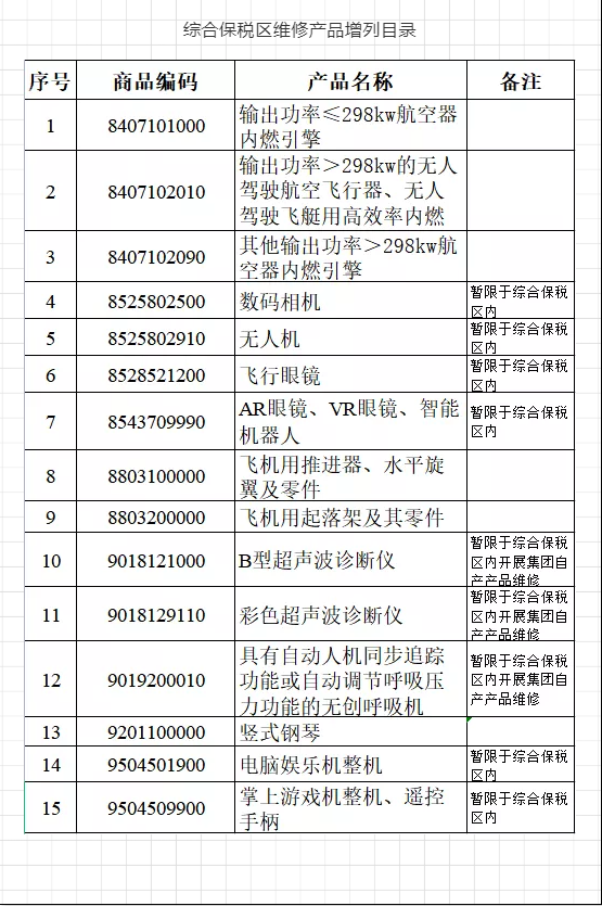 綜合保稅區(qū)第二批保稅維護(hù)產(chǎn)品目錄公布啦~