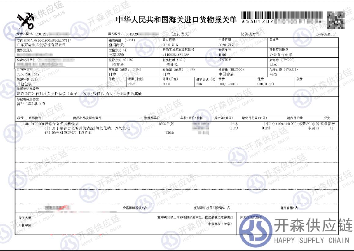 【本文結語】 上述就是深圳港日本清潔劑進口報關清關代理服務【經典案例】的全部內容,希望能對您有所幫助,如有化工品進口報關上任何疑問及問題可隨時在線聯(lián)系我們或撥打 18002611553,開森供應鏈擁有豐富的化工品進口報關操作經驗及案例,10余年進口經驗為您所用,各類進口疑難都能為您一一解答及協(xié)助快速處理解決!