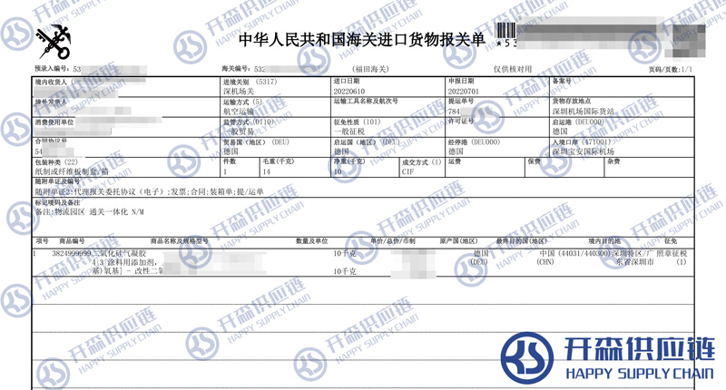 一、德國(guó)二氧化硅氣凝膠進(jìn)口報(bào)關(guān)代理案例詳情