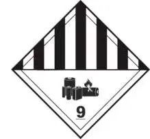 對瓦特小時的額定值不超過100Wh的移動電源(鋰離子電池組),如符合聯合國《關于危險貨物運輸的建議書 規(guī)章范本》(第20修訂版)第3.3章188特殊條款等相關規(guī)定可免除標簽的要求。對瓦特小時的額定值大于100Wh的移動電源(鋰離子電池組),其運輸包裝上應加貼下圖中9A號危險性運輸警示標簽。