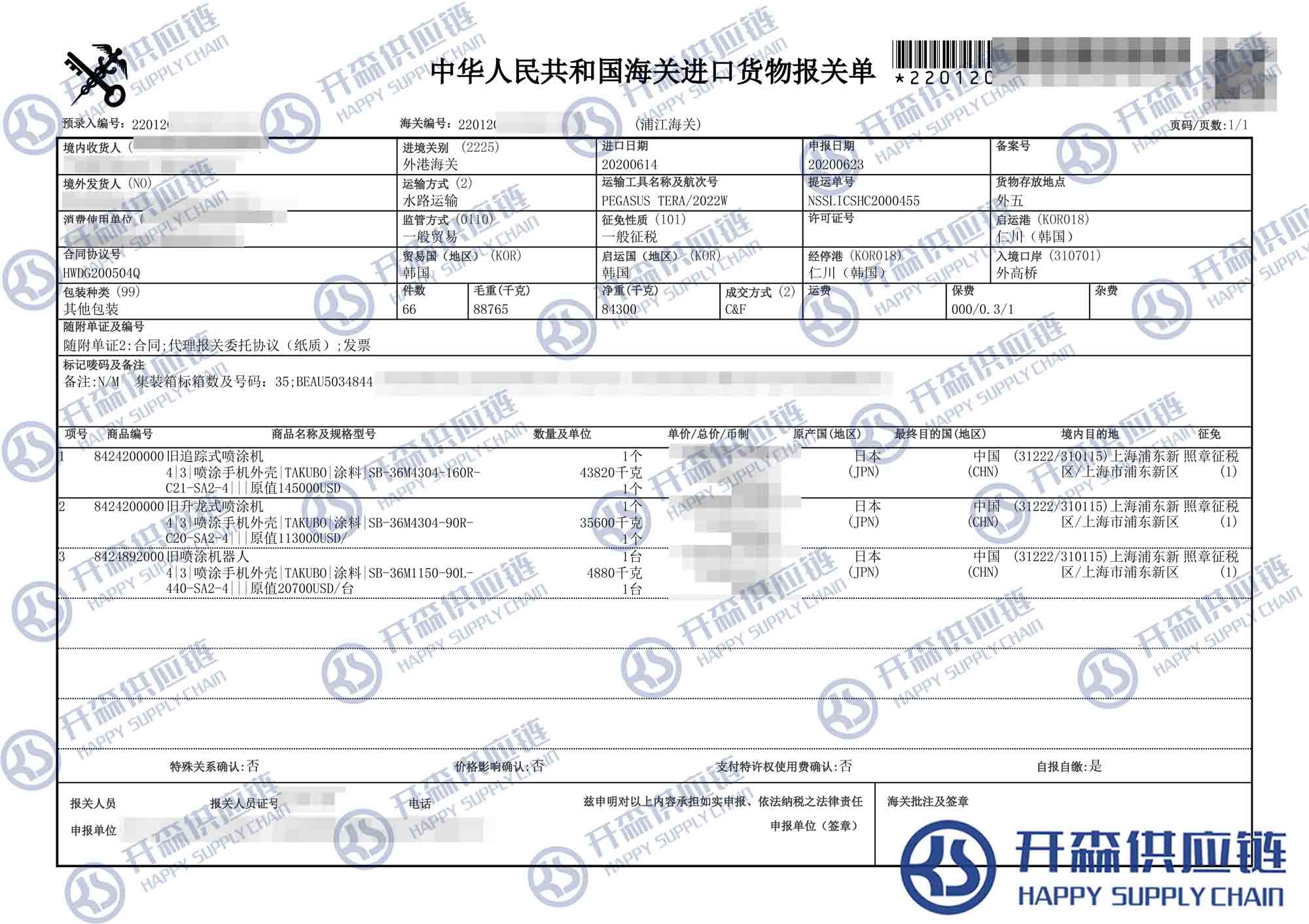 一、舊追蹤式噴涂機進口報關(guān)代理案例詳情
