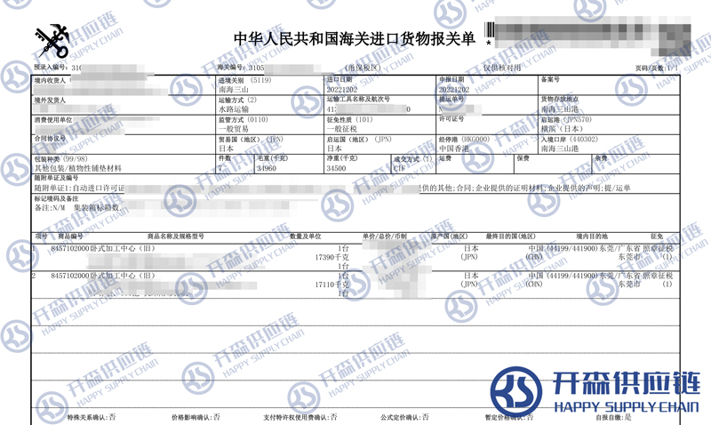二、舊臥式加工中心進(jìn)口報(bào)關(guān)流程步驟