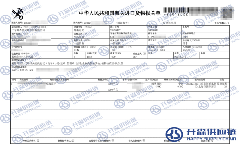 開(kāi)森進(jìn)口供應(yīng)鏈擁有豐富的日本玫瑰花干進(jìn)口報(bào)關(guān)操作經(jīng)驗(yàn)及案例,十余年操作經(jīng)驗(yàn)及案例可供參考,可按需定制玫瑰花干進(jìn)口方案,幫助客戶解決進(jìn)口難題,快速進(jìn)口清關(guān)到港到貨。