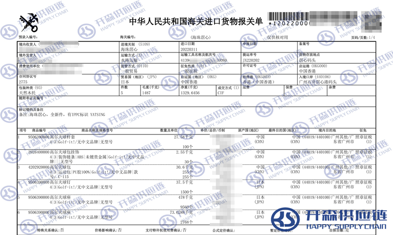 開森進口供應(yīng)鏈擁有豐富的高爾夫球桿用品進口報關(guān)操作經(jīng)驗及案例,十余年操作經(jīng)驗及案例可供參考,可按需定制高爾夫球桿用品進口方案,幫助客戶解決進口難題,快速進口清關(guān)到港到貨。