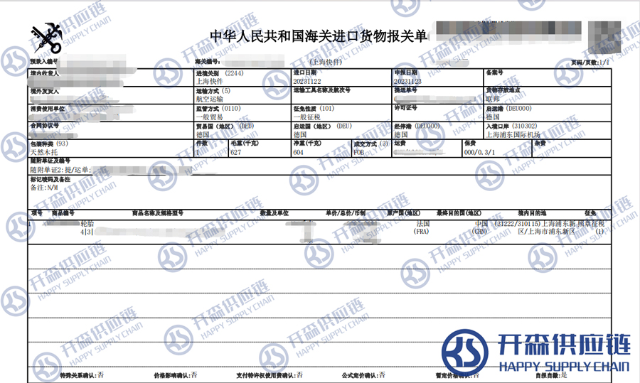 【本文結語】 上述就是上海機場德國汽車輪胎進口報關代理服務【清關案例】的全部內容,希望能對您有所幫助,如有汽車配件進口報關上任何疑問及問題可隨時在線聯(lián)系我們或撥打 18002611553,開森供應鏈擁有豐富的汽車配件進口報關操作經(jīng)驗及案例,10余年進口經(jīng)驗為您所用,各類進口疑難都能為您一一解答及協(xié)助快速處理解決!