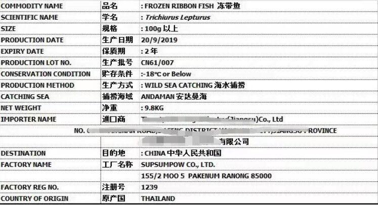 進(jìn)口水產(chǎn)品標(biāo)簽有清晰易辨的中英文字樣,標(biāo)明以下內(nèi)容: