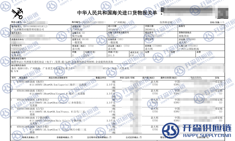 一、廣州機場意大利油畫進口報關(guān)代理案例詳情